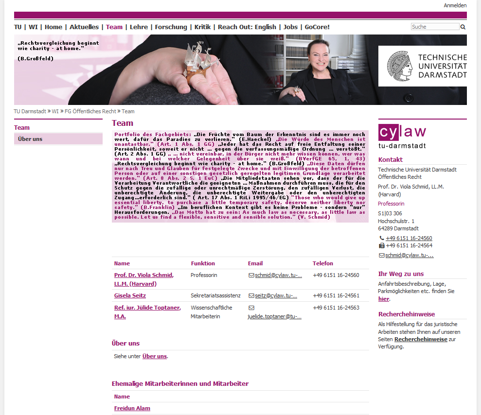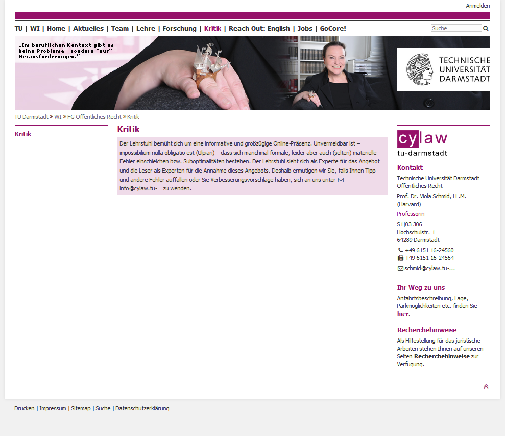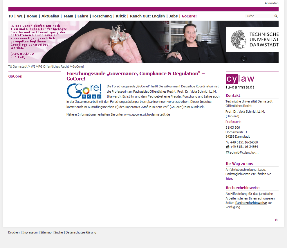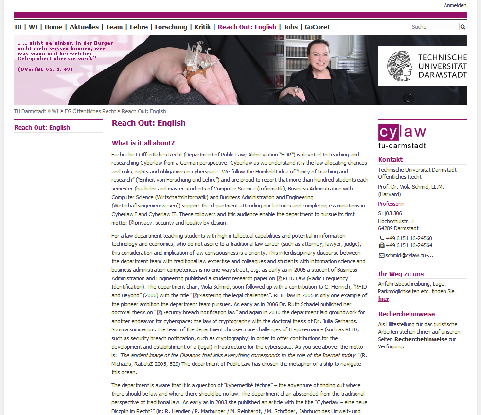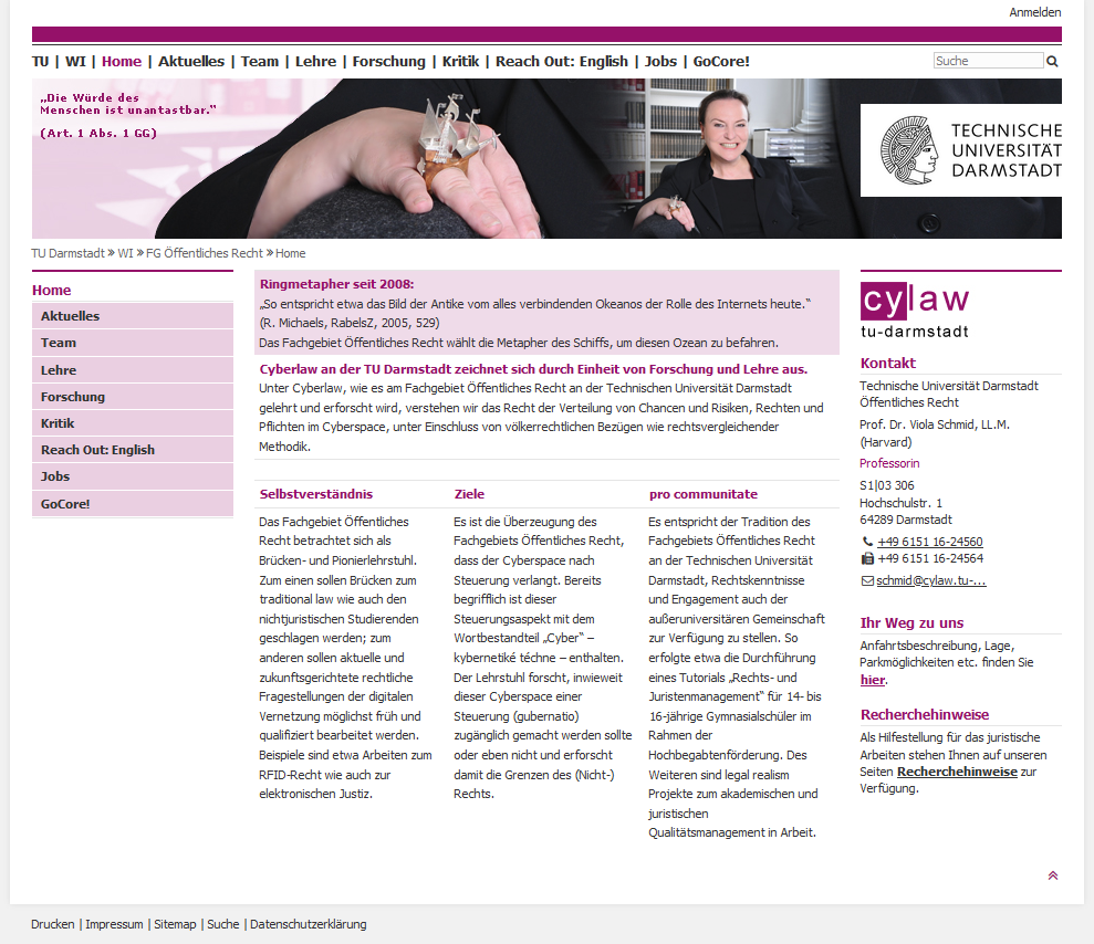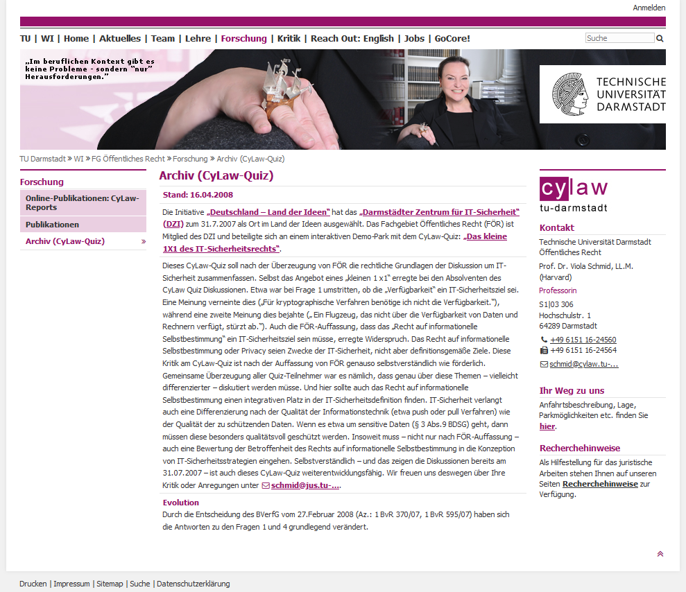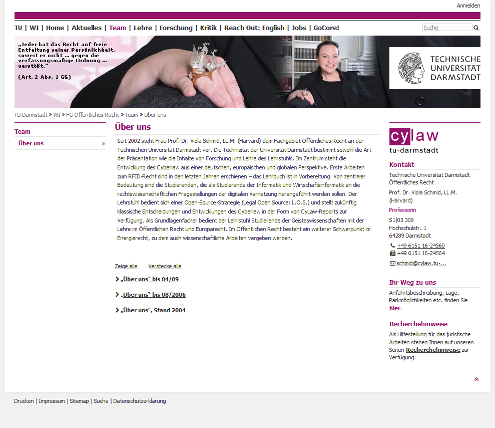Das Archiv stellt ein historisches Abbild des Internetauftritts des Fachgebietes Öffentliches Recht an der Technischen Universiät Darmstadt dar. Das historische Abbild ist nachfolgend interaktiv und als Bildergalerie betrachtbar.