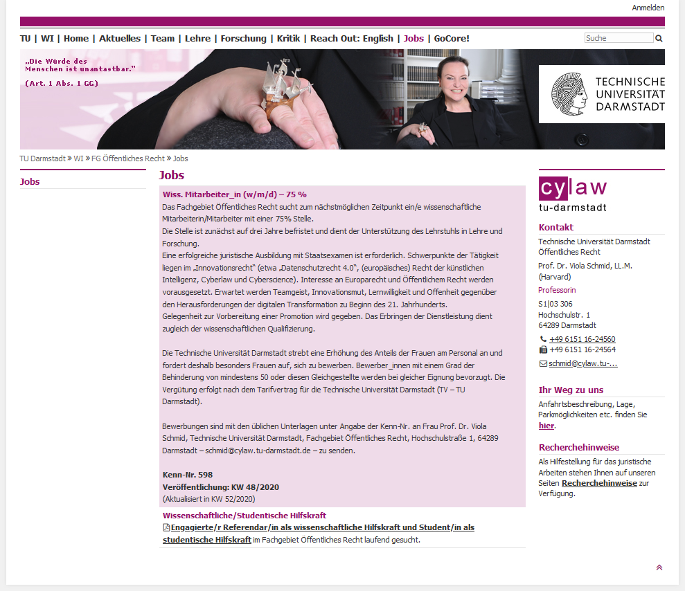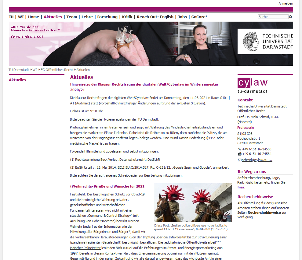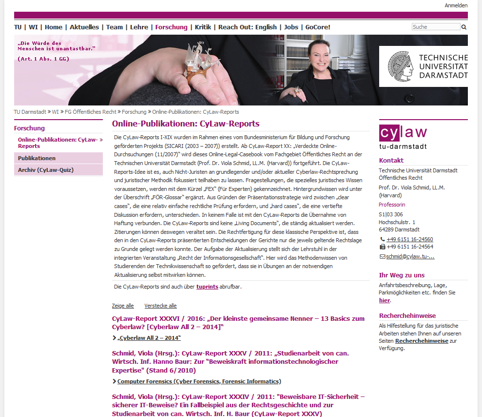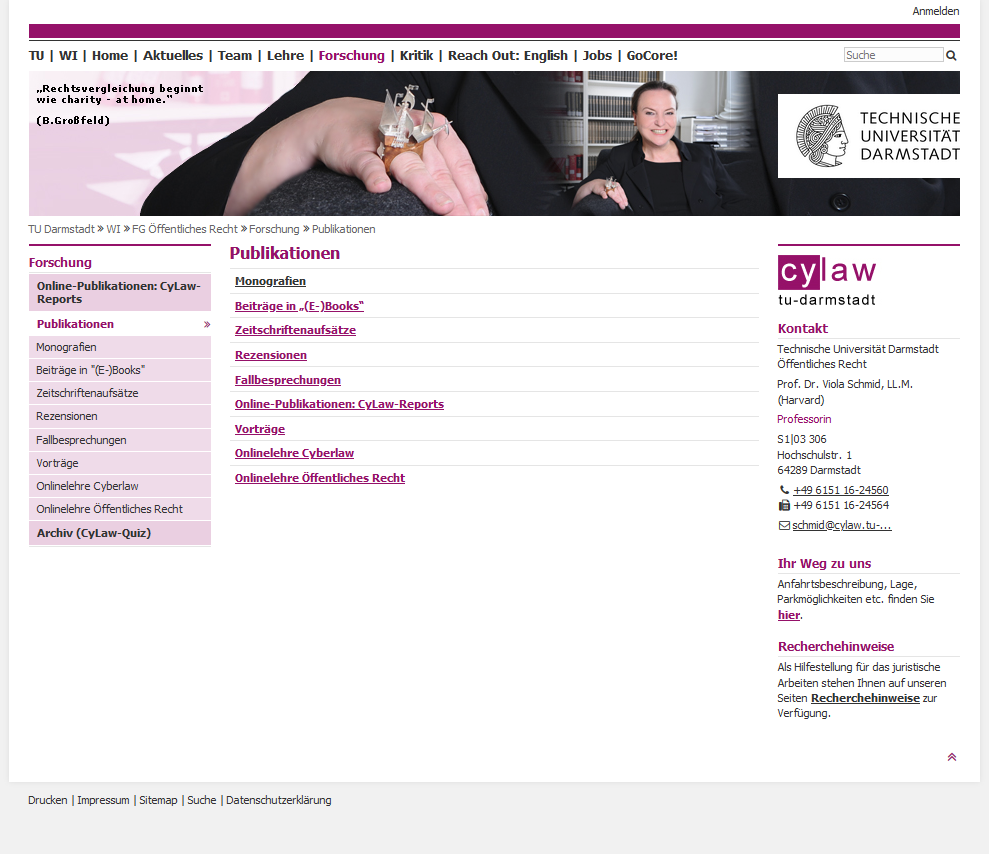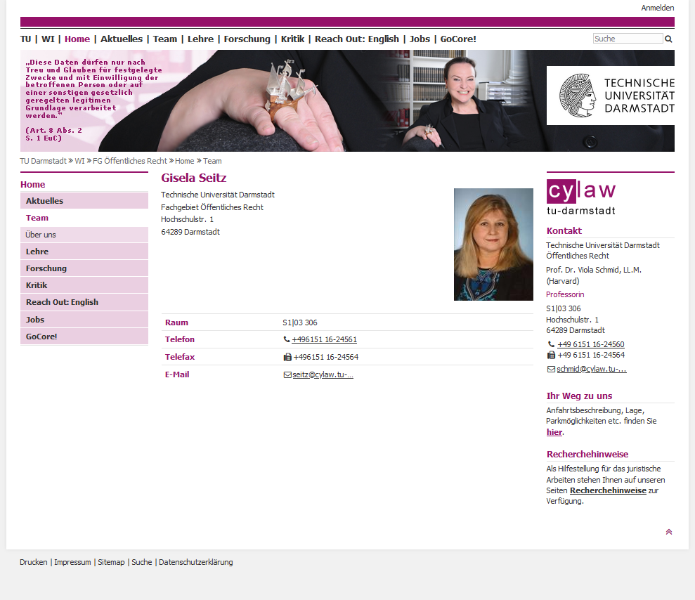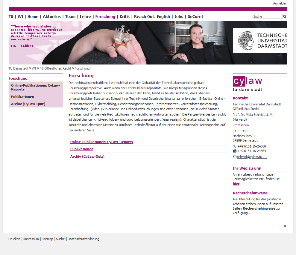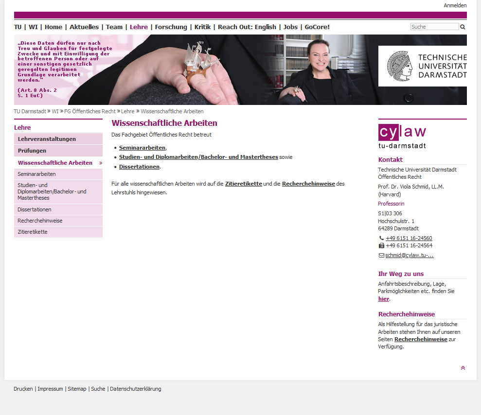 Das Archiv stellt ein historisches Abbild des Internetauftritts des Fachgebietes Öffentliches Recht an der Technischen Universiät Darmstadt dar. Das historische Abbild ist nachfolgend interaktiv und als Bildergalerie betrachtbar.